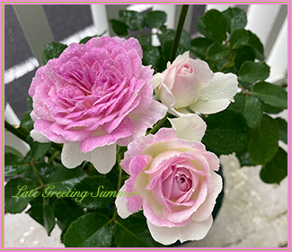 こんにちは。猛暑が続く中、いかがお過ごしでしょうか。犬さんの朝のお散歩も、日に日に早い時間帯を選ばなくてはならない状況ですので、寝不足気味のパパ様ママ様もいらっしゃるのではないでしょうか。真面目な方に多いのですが、犬さんの気持ちを考えて(楽しみにしているから)、暑くてもお散歩は欠かしては可哀想なのではないかと無理して早起きしたり、あるいは少々暑くなってしまっていても、お散歩に行った方がいいのではないかと悩まれるとお聞きすることがあります。色々な考え方があるとは思いますが、犬さんも家族なのですから、お互い尊重しながら生活していけば宜しいのではないかと思います。犬さんの熱中症リスクも考慮し、時には、お散歩を休む選択も必要なのではないかと。犬さんもわかってくれると思います。夏咲きの薔薇も、元気いっぱいの春の満開の薔薇に比べると、小さく控えめに咲いています。ですがその姿は、とても優美です。こんなに厳しい暑さの中、勇敢に咲いてくれて、「ありがとう」と呟いてしまいます。まだまだ酷暑は続きそうですが、犬さん猫さん、ご家族皆様、どうぞご自愛くださいませ。